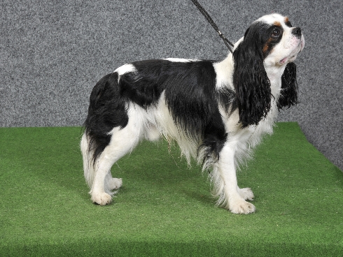 "2,5 letý tricolorní psík s velmi hezkou hlavou, typickým okem, nůžkový skus, dobře utvářený hrudník, štíhlá bedra, rovný hřbet, dobře nasazený ocas, výborně předvedený v pohybu"